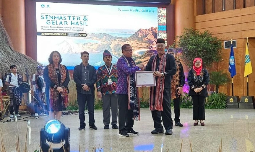 JAKARTA, UNHAS.TV - Atase Pendidikan dan Kebudayaan (Atdikbud) KBRI Dili, Prof. Dr. Tasrifin Tahara, menerima penghargaan Cakra Vidya dalam kegiatan Seminar Nasional Pengabdian kepada Masyarakat dan Gelar Hasil PKM Universitas Terbuka (UT) yang berlangsung di Kampus UT Pondok Cabe, Tangerang, Rabu (20/11/2025).