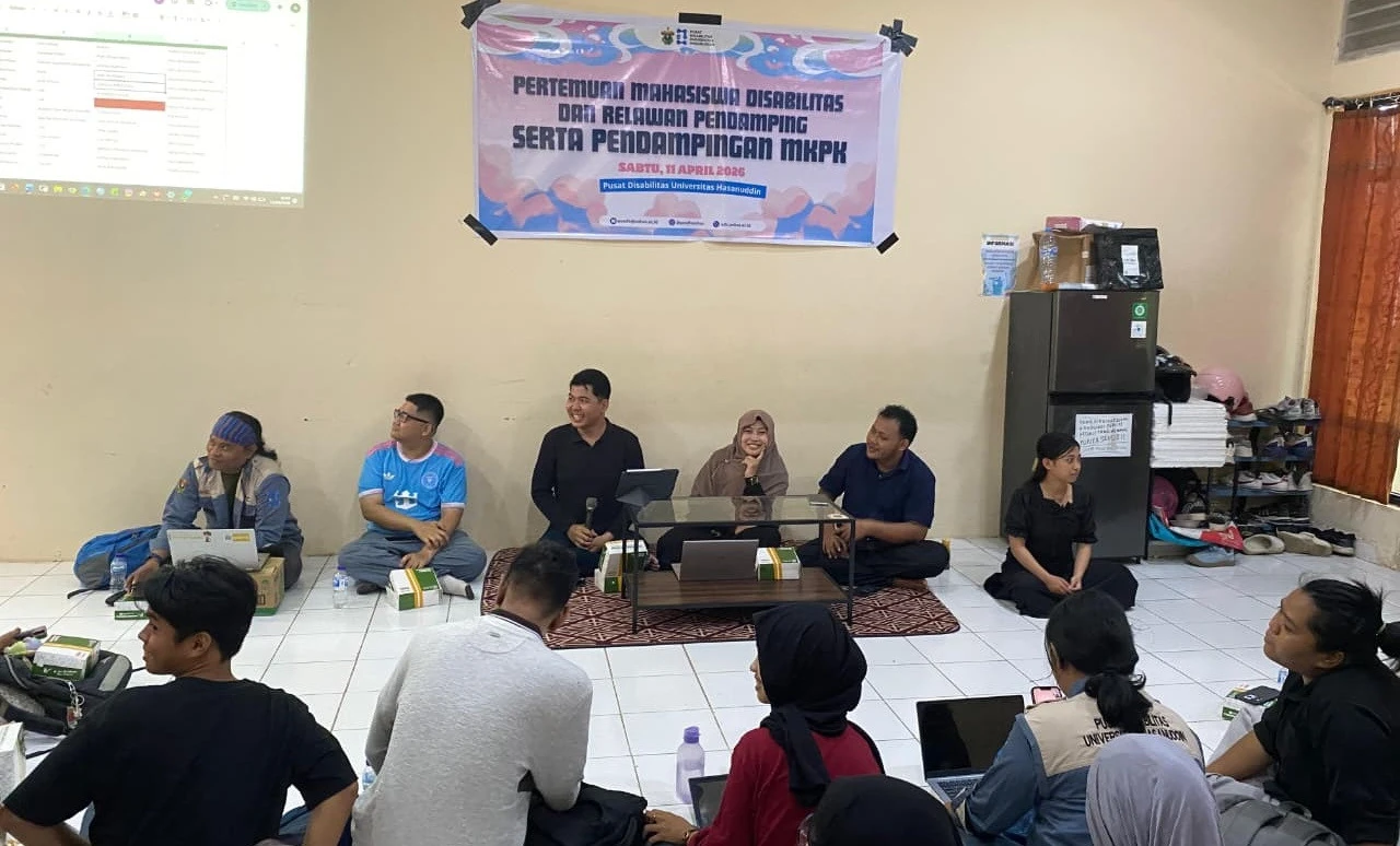 Pusat Disabilitas Unhas menggelar pertemuan mahasiswa disabilitas dan relawan, di Kantor Pusdis Unhas, Kampus Unhas, Makassar, Sabtu (11/4/2026). (Dok Pusdis Unhas)