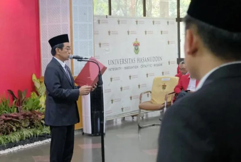 MAKASSAR, UNHAS.TV - Rektor Universitas Hasanuddin (Unhas) melantik 48 pejabat baru pada Upacara Pelantikan dan Pengambilan Sumpah Jabatan Pejabat Tugas Tambahan dan Pejabat Struktural di lantai dasar Gedung Rektorat, Kampus Unhas Tamalanrea, Makassar, Jumat (10/10/2025).