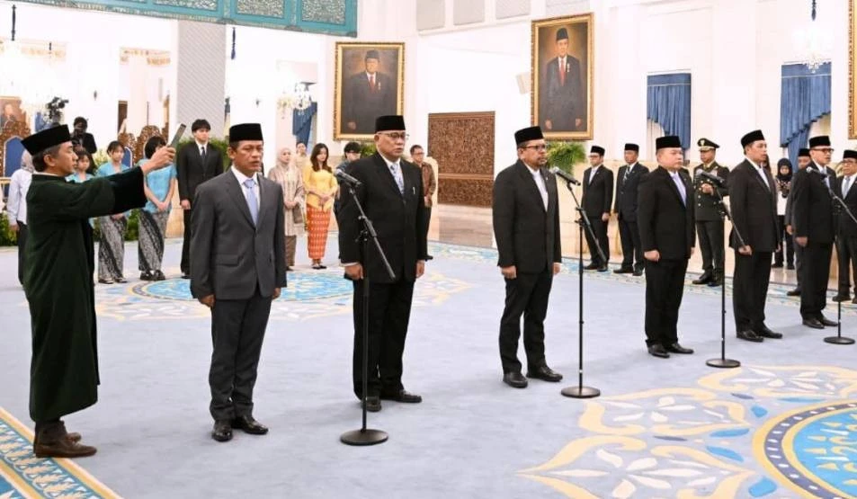 JAKARTA, UNHAS.TV - Presiden Prabowo Subianto melantik enam pejabat baru di Istana Negara, Kompleks Istana Kepresidenan RI, Jakarta, Senin (27/4/2026). Pelantikan enam pejabat baru itu bagian dari reshuffle Kabinet Merah Putih sisa masa jabatan periode tahun 2024-2029.