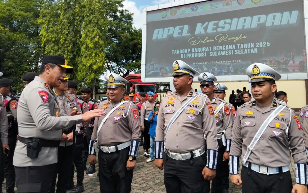 MAKASSAR, UNHAS.TV - Kepolisian Daerah (Polda Sulsel) menggelar Apel Kesiapsiagaan Tanggap Darurat Bencana Tahun 2025, di halaman Markas Kepolisian Daerah (Mapolda Sulsel), Jl Perintis Kemerdekaan KM 16, Sudiang, Kota Makassar, Rabu (5/11/2025) pagi.