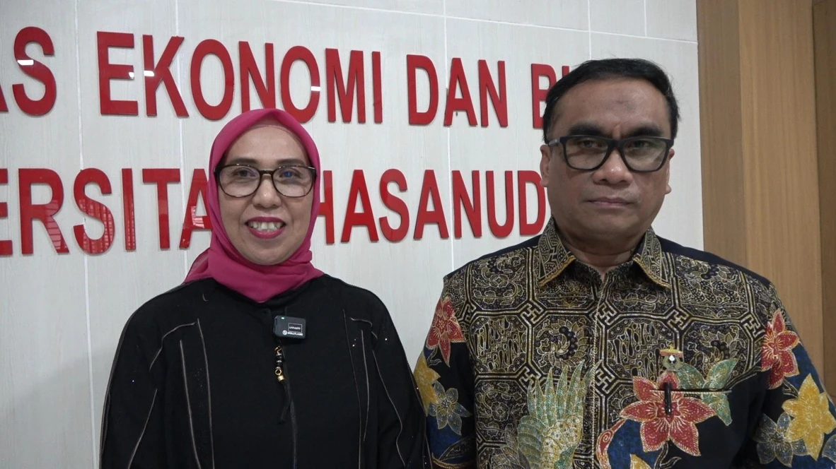 Dekan FEB Unhas Prof Mursalim Nohong bersama Ketua DWP FEB Unhas Rahmatiah Parodda. (unhas tv/venny septiani)