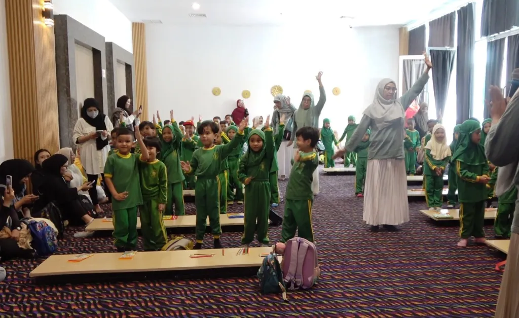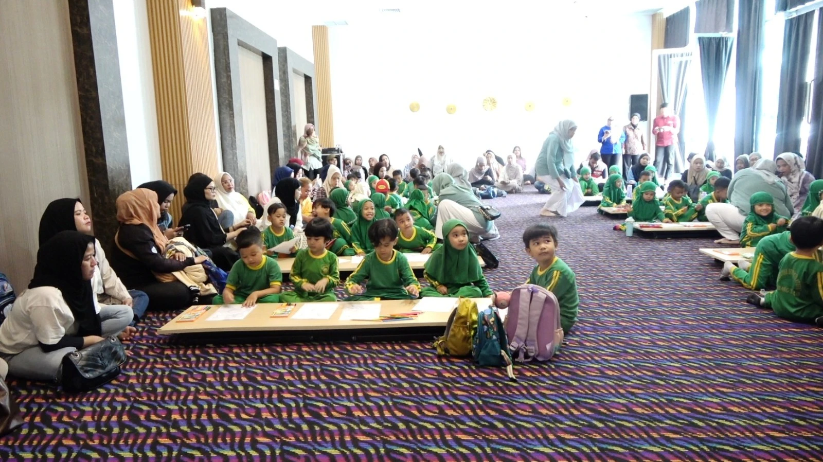 Murid TK Aisyiyah Bustanul Athfal Cabang Tallo mengikuti kegiatan “Edu Fun” di Hotel Unhas and Convention, Sabtu (4/10/2025). (dok unhas.tv/rahmatia)