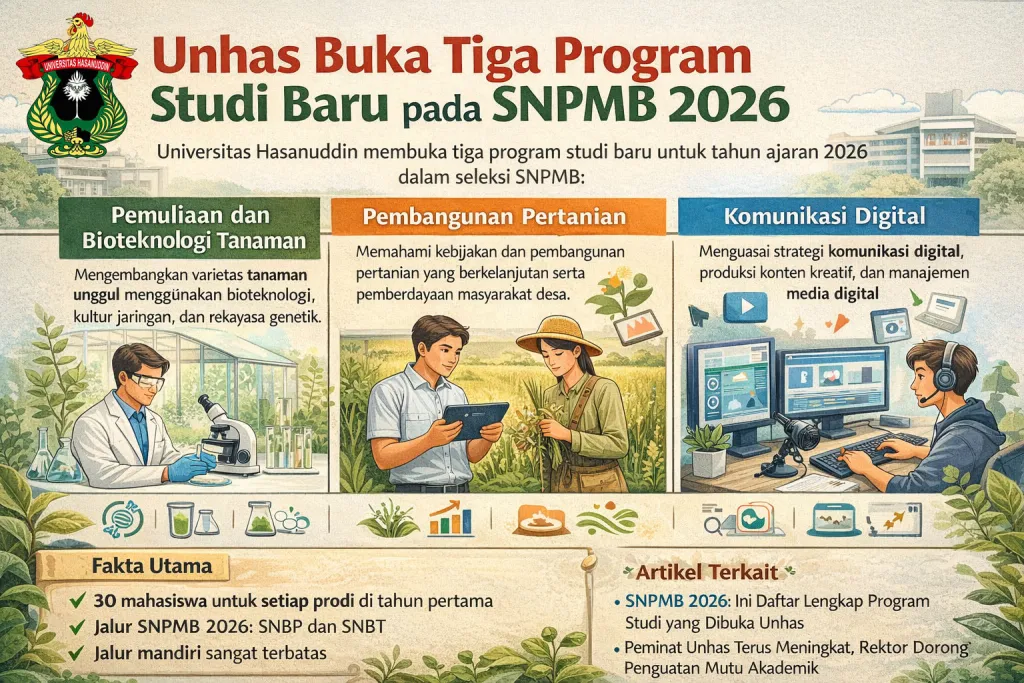 PRODI BARU. Universitas Hasanuddin (Unhas) resmi membuka 3 Prodi baru pada pelaksanaan SNPMB 2026. (foto: ChatGPT)