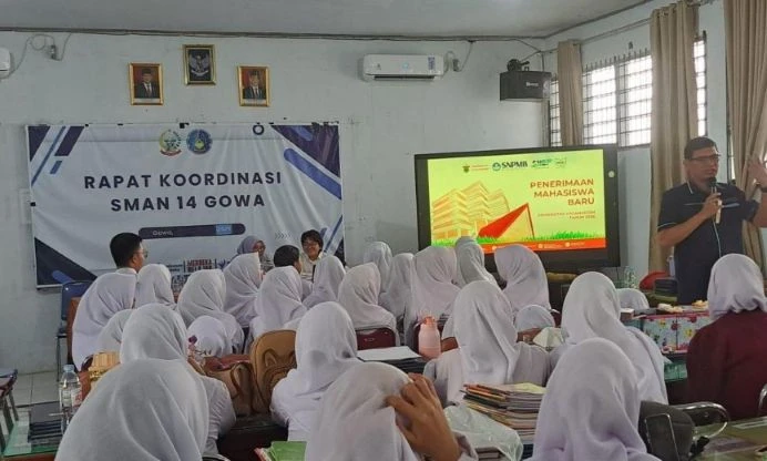 SNPMB - Sosialisasi tes masuk perguruan tinggi yang dilakukan Unhas di salah satu sekolah di Kabupaten Gowa. Foto: Humas Unhas