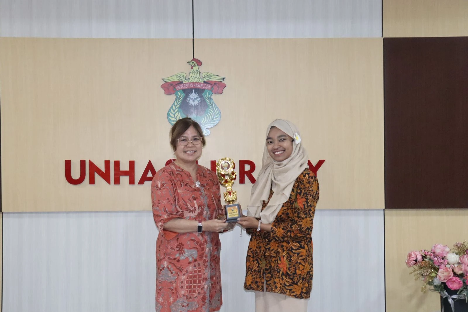 Kepala UPT Perpustakaan Unhas, Dr Fierenziana Getruida Junus SS MHum mengapresiasi pencapaian para pemenang.