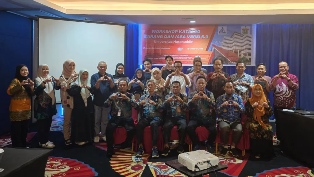MAKASSAR, UNHAS.TV — Workshop Penggunaan Katalog Elektronik Versi 6 digelar Direktorat Logistik/Unit Kerja Pengadaan Barang dan Jasa (UKPBJ) Universitas Hasanuddin. Kegiatan tersebut yang digelar pada 17–18 Oktober 2025 di Hotel Swiss-Bell Makassar, bekerja sama dengan Dewan Pengurus Daerah Ikatan Ahli Pengadaan Indonesia (DPD IAPI) Sulawesi Selatan.